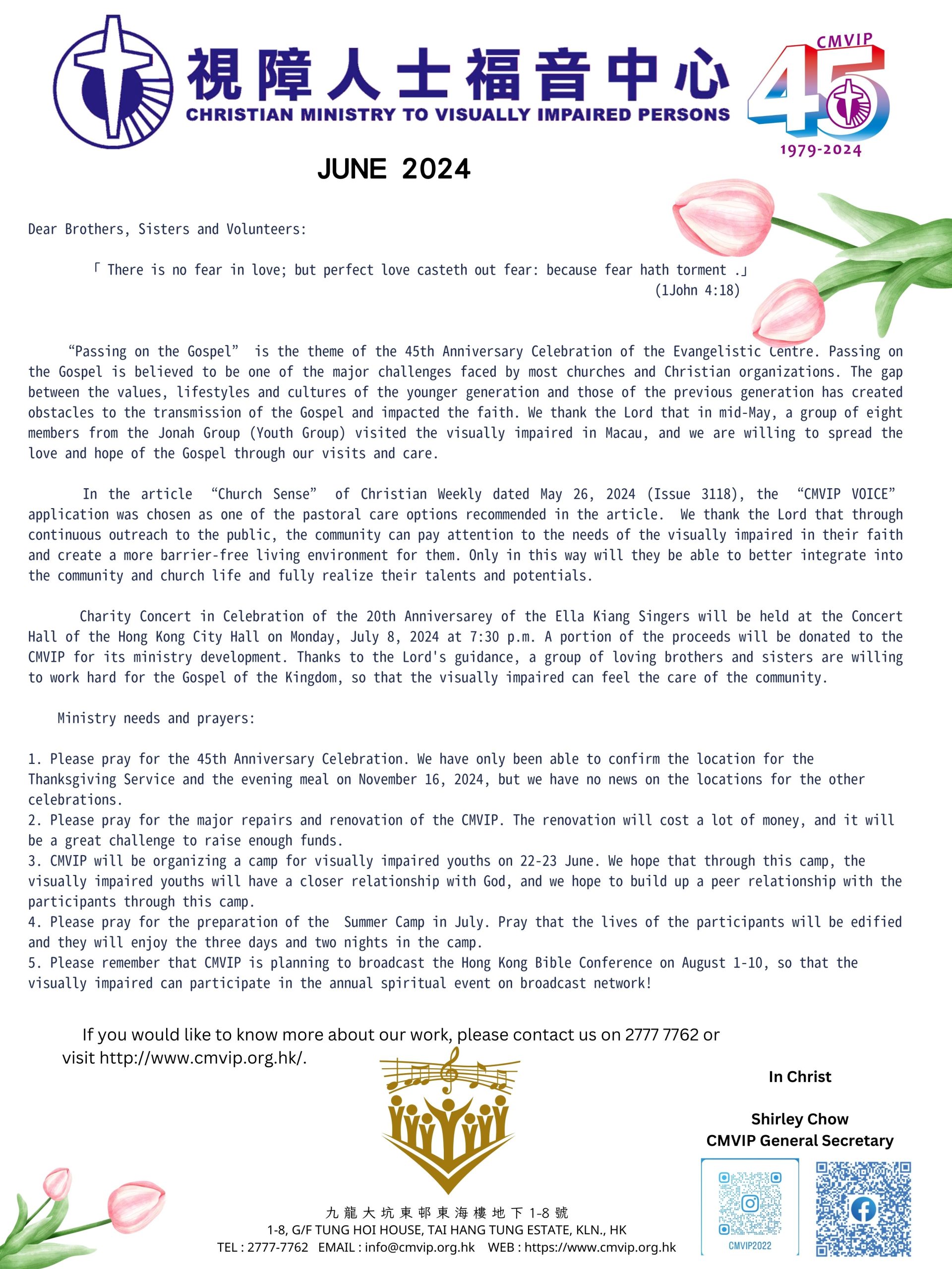 4 June June 4, 2024 JUNE 2024 Newsletter Dear Brothers, Sisters and Volunteers: 「 There is no fear in love; but perfect love casteth out fear: because fear hath ... 閱讀更多