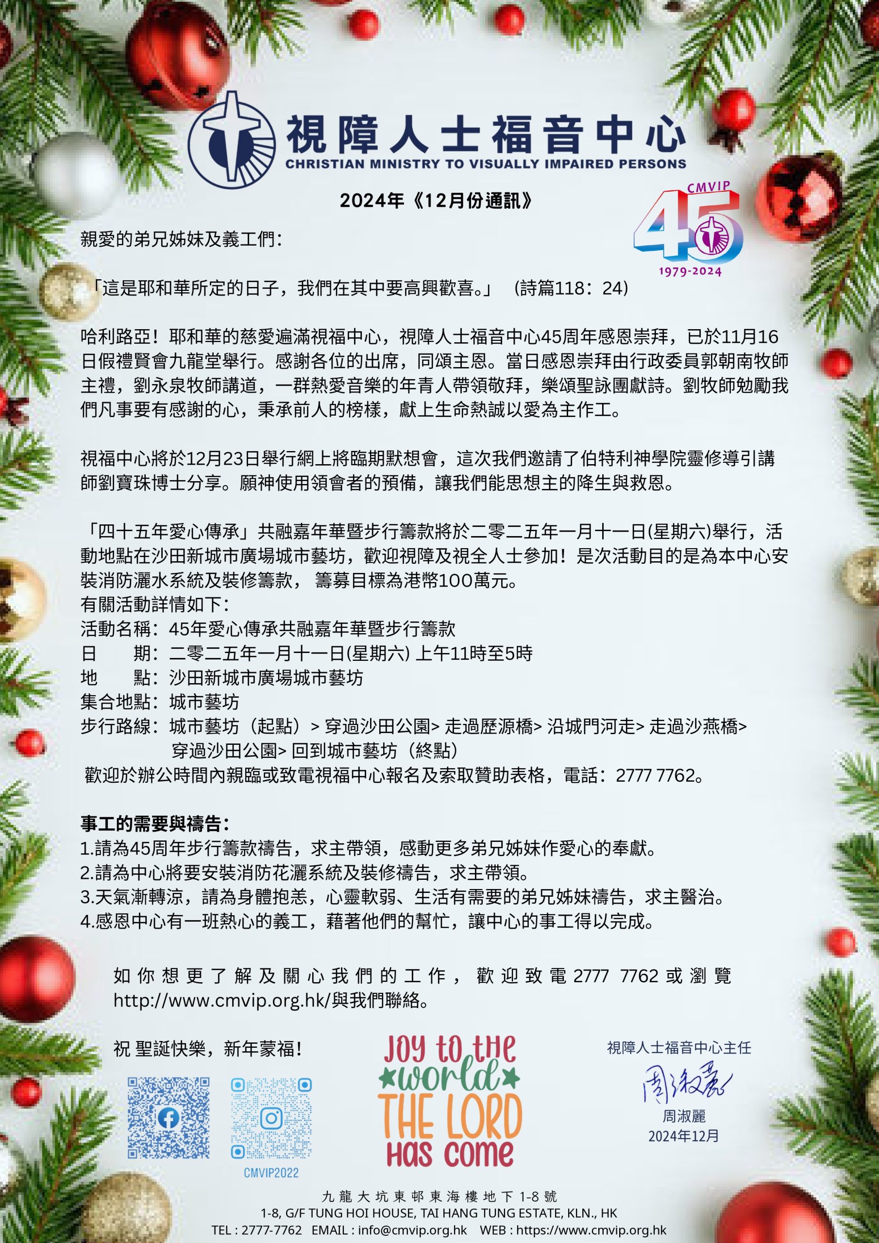 親愛的弟兄姊妹及義工們: 「願耶和華賜福給你,保護你。願耶和華使他的臉光照你,賜恩給你。願耶和華 […]